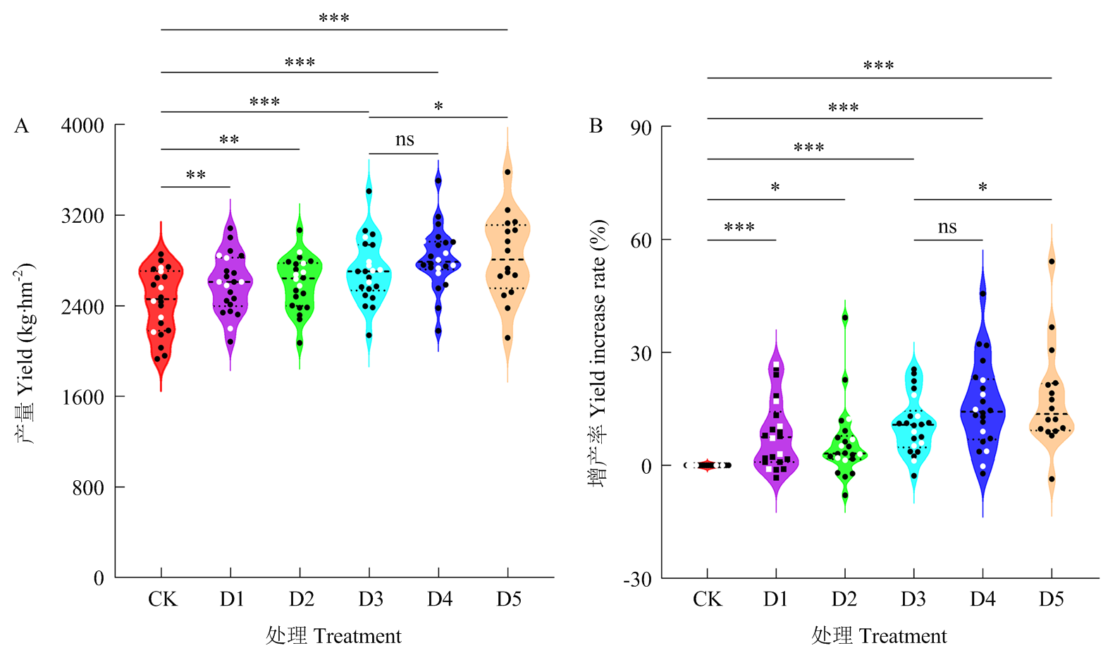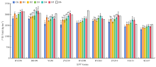 【Objective】Rapeseed (Brassica napus L.) is the first major oil-bearing crop in China. Enhancing rapeseed yield per unit area is the key to increase its effective supply and economic benefits. Under the condition of mechanical direct seeding, further clarifying the impacts of major technical factors, such as variety selection, overwintering regulation, and disease and pest control, on the yield per unit area could provide a theoretical basis for the improvement of rapeseed yield per unit area in China. 【Method】Nine high-yield and high-quality rapeseed varieties were selected, and mechanical direct-seeding experiments were conducted at 22 experimental sites (major rapeseed-producing counties) over 2 years from 2021 to 2023. A systematic study was carried out to investigate the impacts of factors such as rapeseed variety, seed treatment, overwintering regulation, and Sclerotinia sclerotiorum control on the yield per unit area under the condition of reduced topdressing application of nitrogen fertilizer. 【Result】The application of three combined treatment techniques, namely seed treatment (Maishuping coating for pest prevention, D1), overwintering regulation (D2), and novel Sclerotinia sclerotiorum control (fluxapyroxad, D3), all significantly increased the yield per unit area of rapeseed under reduced nitrogen topdressing (urea 45 kg·hm-2). Compared with the traditional loss-reduction technology mode (uncoated seeds+no overwintering regulation and prochloraz for Sclerotinia sclerotiorum control+urea topdressing, CK), with a yield of 112.5 kg·hm-2, the yields under D1, D2 and D3 treatments increased significantly by 6.2%, 6.4%, and 10.9%, respectively, while the corresponding yields reached 2 594.2, 2 600.4 and 2 708.9 kg·hm-2, respectively. However, only the incidence of Sclerotinia sclerotiorum was extremely significantly reduced by 49.1% under the D3 treatment. Different technical combinations exhibited significant interaction effects on yield per unit area improvement. When seed treatment and overwintering regulation were combined with the novel Sclerotinia sclerotiorum control technology respectively, the yields were significantly 15.7% and 16.1% higher than those under the traditional technology, respectively, reaching 2 820.0 and 2 834.2 kg·hm-2, respectively, while the incidence of Sclerotinia sclerotiorum decreased by 55.6% and 55.3%, respectively. Additionally, there was a significant interaction effect between rapeseed variety genotypes and technology. The application of new technologies could exceed the national regional trial yields of the corresponding varieties. For instance, the regional trial yields of Yangguang 131, Dadi 199 and Zhongyouza 39 were 2 341.2, 3 085.5, and 2 982.0 kg·hm-2, respectively. Under optimized combinations of regulatory technology, the yields were 11.7%, 5.0% and 3.5% higher than their respective regional trial yields, respectively. A multiple stepwise regression analysis was conducted between the experimental yield and factors including the regional trial yield, disease resistance of rapeseed varieties, as well as different technological combinations, and the results revealed that the critical factors determining yield levels were the 1000-seed weight in regional trials, regional trial yield of varieties, novel Sclerotinia sclerotiorum control, and reduced winter urea topdressing rate. Canonical correlation analysis further confirmed that the regional trial yield, regional trial 1000-seed weight, and regional trial silique number of varieties determined the yield levels. Meanwhile, fluxapyroxad and Maishuping played a very important role in enhancing yield increase rates. Additionally, the novel Sclerotinia sclerotiorum control technology and overwintering stress resistance regulation were related to reducing the incidence of Sclerotinia sclerotiorum. 【Conclusion】In the mechanical production of rapeseed, the regional trial yield of varieties was a key factor affecting the rapeseed yield levels. The use of fluxapyroxad to control Sclerotinia sclerotiorum was an effective factor for reducing the yield loss caused by Sclerotinia sclerotiorum at present. The combination of seed treatment, overwintering regulation and the novel Sclerotinia sclerotiorum control technology could further exert the yield potential of rapeseed varieties. It was suggested that in practical production, high-yield and high-quality varieties should be selected, and loss-reduction technologies, such as supporting seed treatment, overwintering regulation and fluxapyroxad, should be matched to achieve a significant improvement in rapeseed yield per unit area.