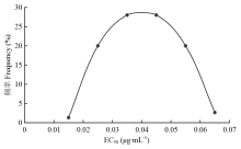 | 菌株 Strain | 基因型 Genotype | 回归方程 Equation of regression (y=) | R2 | EC50 (μg·mL-1) | RF | 抗性水平 Resistance level |