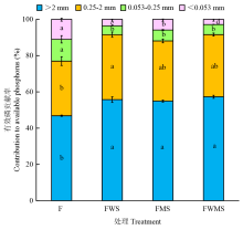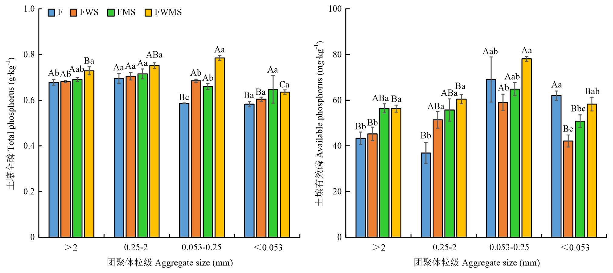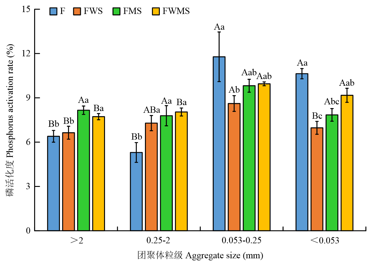 【目的】探究小麦玉米秸秆还田对砂姜黑土团聚体粒级分布及团聚体磷组分的调控作用,以期为土壤结构改良和磷素活化提供理论支撑。【方法】依托安徽省蒙城县始于2008年的小麦玉米秸秆还田长期定位试验,设置4个处理:常规施肥(F)、常规施肥+小麦秸秆单季还田(FWS)、常规施肥+玉米秸秆单季还田(FMS)、常规施肥+小麦玉米秸秆双季还田(FWMS),于2023年小麦成熟期采集0—20 cm耕层土样测定土壤团聚体组成及各粒级团聚体磷组分含量,解析小麦玉米秸秆还田对砂姜黑土团聚体磷素形态分布、磷活化度和有效磷贡献率的影响。【结果】与F处理相比,FWS、FMS、FWMS处理的>2 mm团聚体占比分别显著增加了35.9%、30.6%和39.1%,0.25—2 mm和0.053—0.25 mm团聚体的占比显著下降。小麦玉米秸秆还田可显著提升砂姜黑土的水稳性团聚体平均重量直径,显著降低土壤团聚体破坏率。秸秆还田条件下砂姜黑土的全磷和有效磷含量分别显著提高6.5%—26.0%和21.1%—37.6%。秸秆还田处理能够显著增加砂姜黑土中的活性磷组分NaHCO3-Pi和中活性磷组分NaOH-Po含量,增幅分别达到17.1%—51.3%和19.5%—46.2%。从土壤团聚体角度来看,与F处理相比,小麦玉米秸秆还田处理下0.25—2 mm团聚体的有效磷含量和磷活化度分别显著提升39.3%—63.9%和37.5%—51.7%。FWS、FMS和FWMS处理的>2 mm团聚体有效磷贡献率较F处理分别显著增加19.0%、17.3%和22.3%,秸秆还田使砂姜黑土微团聚体(0.053—0.25 mm)和粉黏粒组分(<0.053 mm)的有效磷贡献率显著下降。砂姜黑土0.25—2 mm团聚体的活性磷组分(H2O-P、NaHCO3-Po)和中活性磷组分(NaOH-Po)含量在小麦玉米秸秆还田条件下有所增加。【结论】小麦玉米秸秆还田是改善砂姜黑土团聚体粒级组成与稳定性、提升土壤供磷能力的有效措施。