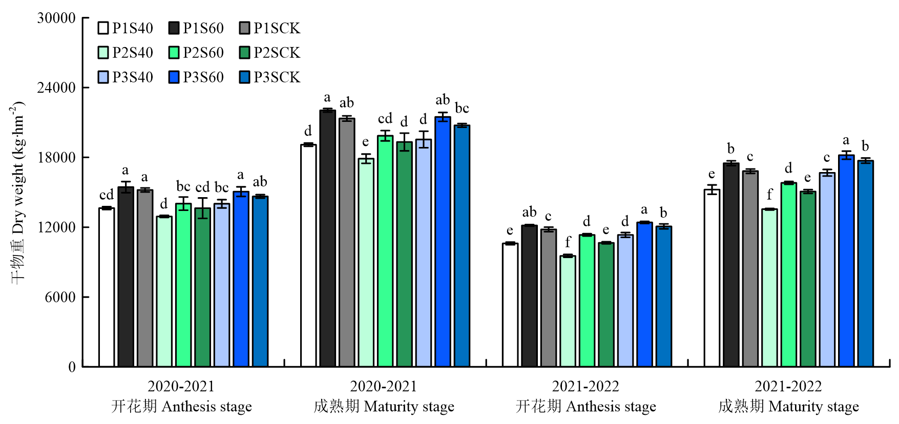 | 垄播 Ridge sowing (P2) | S40 | 346.45b | 46.24abc | 49.25ab | 7.24d | 332.95d | 34.58b | 53.15a | 6.18c |