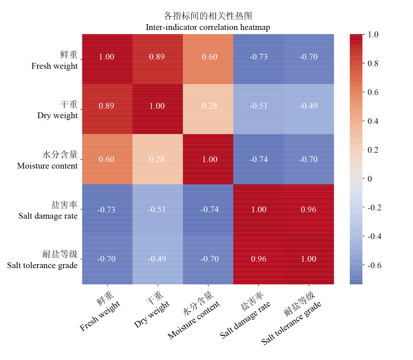 | 盐胁迫条件下水分含量 Moisture content under salt stress (%) | 85.61 | 4.63 | 5.41 |
