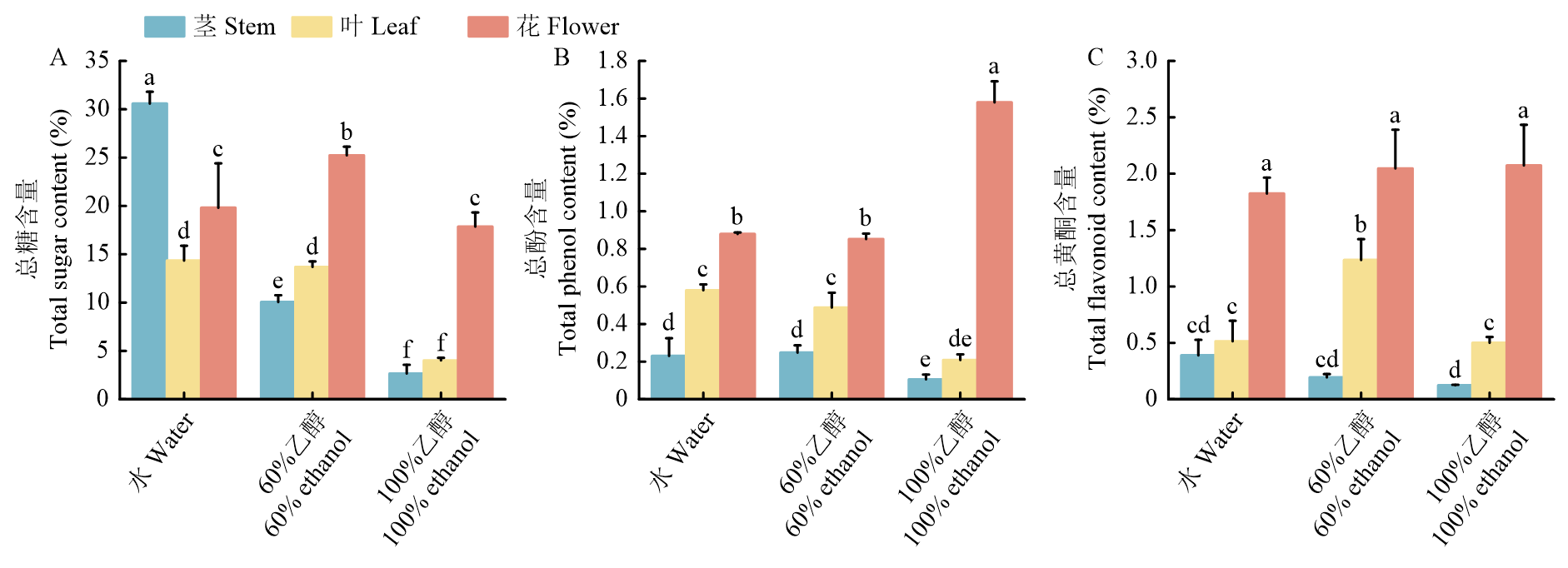 紫皮石斛不同部位乙醇提取物的酚类化合物含量"