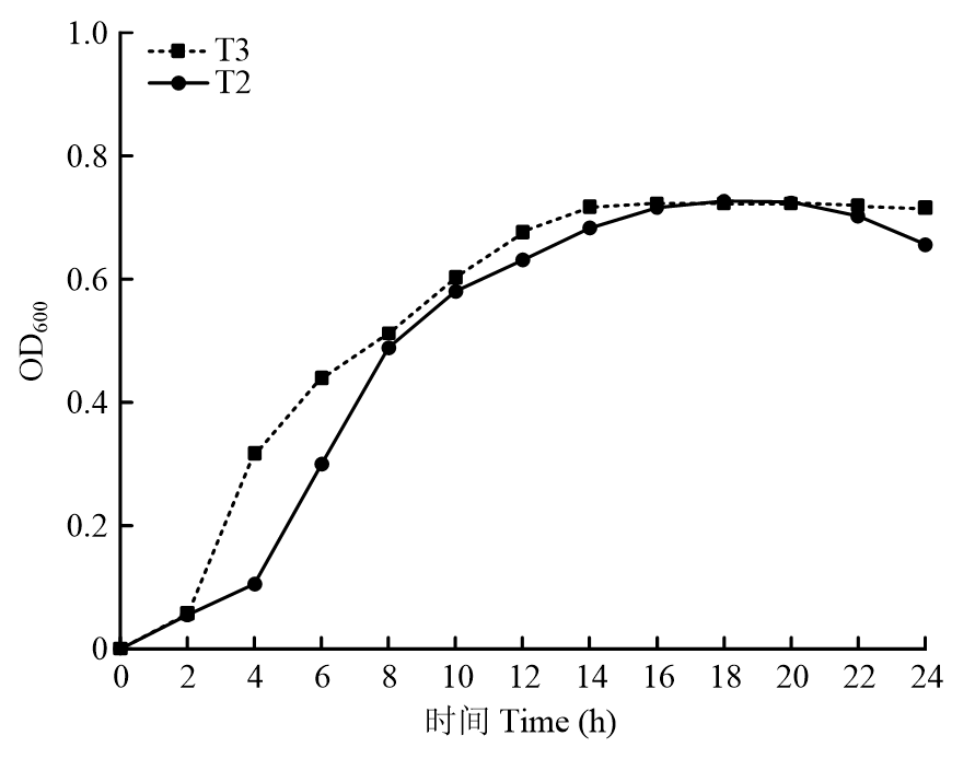 【背景】三甲胺(trimethylamine,TMA)作为典型的含氮胺类有机污染物,是养殖业臭气污染的主要贡献气体之一。该物质为具有鱼腥臭味的有害气体,其恶臭强烈,不仅造成养殖区域的点源污染,长期低浓度暴露还会对人类造成潜在的健康风险,近几年已受到人们关注。【目的】通过对采集的畜粪中TMA脱除菌的分离和筛选,得到降解能力强的高效TMA脱除菌,为畜牧养殖中TMA的污染防治研究提供优良菌种。【方法】以猪粪和牛粪作为TMA脱除菌株的分离来源,通过富集培养、分离和纯化及除臭能力测定分离出TMA脱除率高的菌株,并采用形态学观察和16S rRNA基因分析对菌株进行鉴定以确定其菌属特性;在此基础上,进一步探究该菌株在不同pH(5.0、6.0、7.0、8.0 和 9.0)、碳源(木糖、蔗糖、果糖、麦芽糖和葡萄糖)、盐度(0、0.5%、1.0%、1.5% 和 2.0%)和接种量(1%、5%、10%、15% 和 20%)条件下菌株生物量的变化,确定菌株适宜的生长条件;最后对高效菌株的实际除臭效果进行验证,通过检测粪便发酵初期TMA的释放量和脱除率,确定菌株对TMA的脱除能力。【结果】(1)从畜粪中共分离出10株TMA脱除菌株(命名T1—T10),其中菌株T2(枯草芽孢杆菌(Bacillus subtilis))和菌株T3(不动杆菌(Acinetobacter sp.))的TMA脱除率最高,培养48 h的脱除率分别达26.91%和29.59%,显著高于其他8株菌(P<0.05)。(2)不同pH、碳源、盐度和接种量对菌株T2和T3的生长均产生不同影响。菌株T2的适宜生长条件为pH=6.0、碳源=葡萄糖、盐度=0.5%和接种量=1.0% ;T3的适宜生长条件为pH=8.0、碳源=蔗糖、盐度=0.5%和接种量=1.0%。在此条件下菌株生长最快,生物量最大。(3)除臭效果验证试验表明,粪便中添加菌株T2和T3的TMA平均释放量均显著低于对照组(P<0.01),最高除臭率分别达42.65%和39.63%。【结论】分离的枯草芽孢杆菌(T2)和不动杆菌(T3)具有高效脱除TMA能力,在畜禽粪污处理及畜牧养殖污染防治领域具有潜在的利用价值。