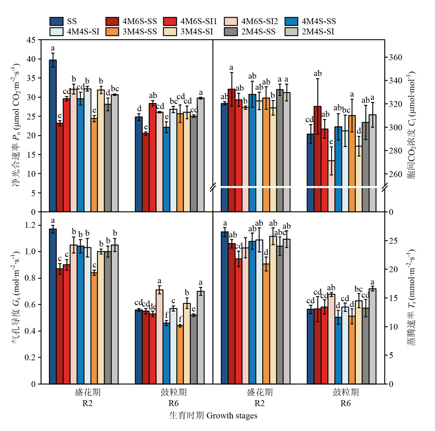 4M6S-SS 3.50±0.20b 70.67±3.10ab 23.96±0.49c 0.40±0.01c