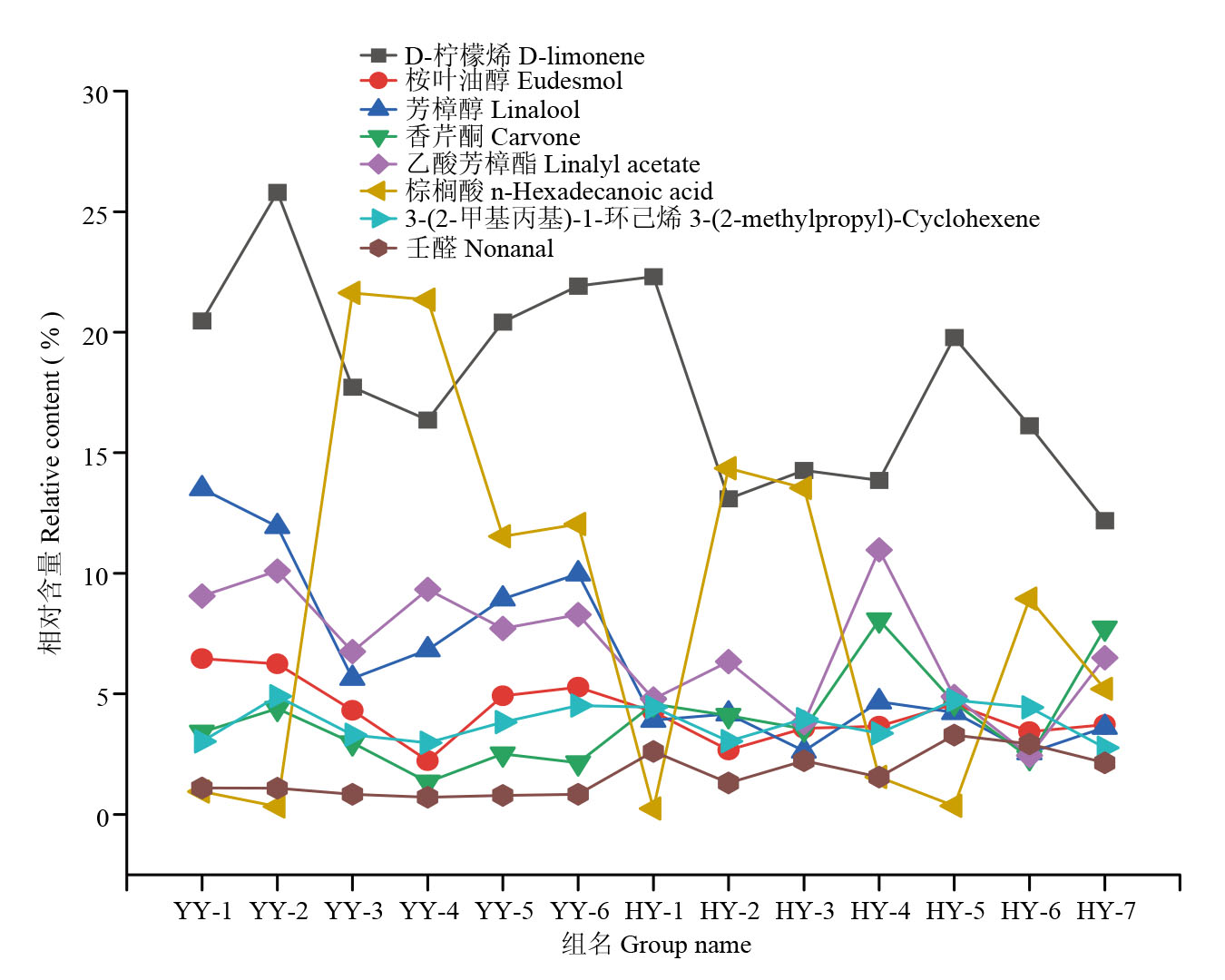 芦昶彤, 刘亚龙, 刘远上, 张弛, 陈芝飞, 宁一博, 曹雪颖, 曲利利, 许春平. 甜橙油存放过程中的挥发特性及特征香气的变化规律. 化学研究与应用, 2025, 37(4): 904-914.